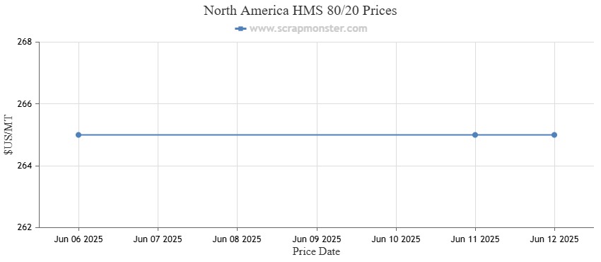 The prices of #1 HMS have not altered in the past week. Shredded Auto Scrap was likewise flat during the week. The HMS 80/20 pricing for the Index stayed at $265 per MT. #1 Busheling remained at $420 per MT in the week ending June 12, 2025.