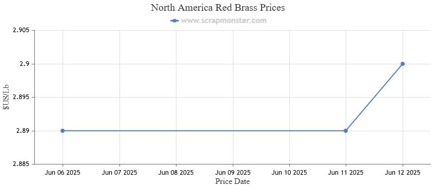 Red Brass was up marginally by 0.33% from the previous week, trading at $3.00 a pound as of Thursday, June 12, 2025. Additionally, Yellow Brass's price per pound increased by 0.36% from the previous week.