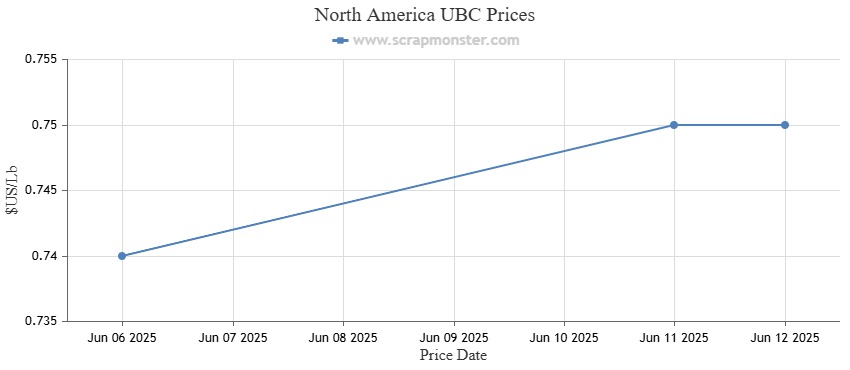 The price of E.C. Aluminum Wire reported an increase of 2.73% from the prior week. During the week ending June 12, 2025, the price of 6063 Extrusions was up by 1.15% when compared to the previous week. The Index showed that the price of Old Cast has edged higher by 1.37%. Additionally, UBC's prices witnessed a jump of 1.35% on the Index during the previous week.