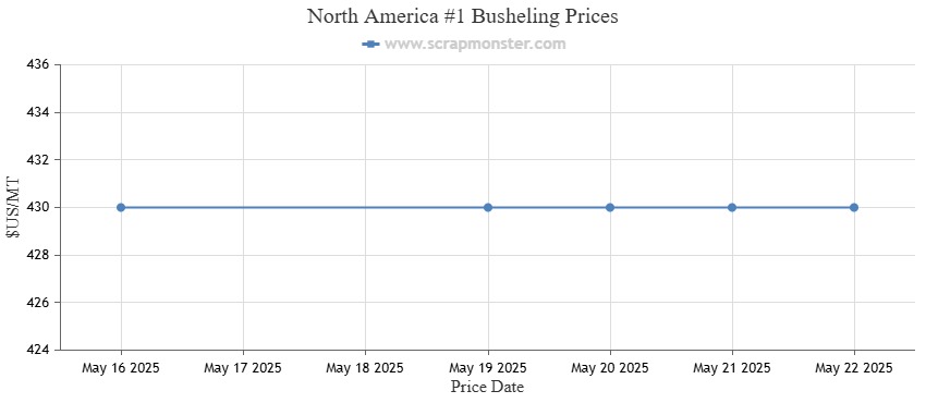 The prices of #1 HMS have not altered in the past week. Shredded Auto Scrap was likewise flat during the week. The HMS 80/20 pricing for the Index stayed at $275 per MT. #1 Busheling remained at $430 per MT in the week ending May 22, 2025.