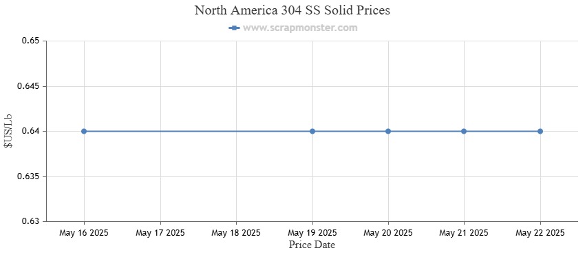 For the week ending May 23, 2025, 304 SS solid prices stayed flat at $0.64 a pound.