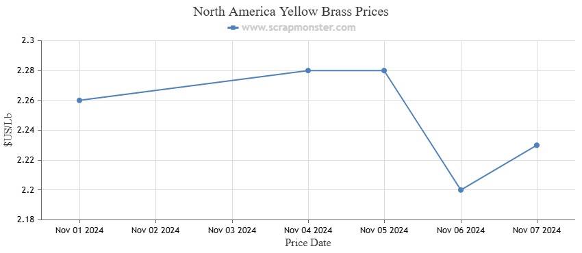 By the conclusion of the week, the price of a pound of red brass had dropped from $2.41 to $2.38. On the Index, Yellow Brass was also down. The product's price decreased by 1.33%, from $2.26 to $2.23 per pound.