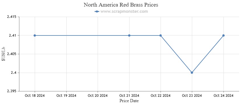 Red Brass's price, at $2.45 per pound, showed no variation from the previous week. Also, over the previous week, Yellow Brass prices remained unchanged at $2.31 per pound.