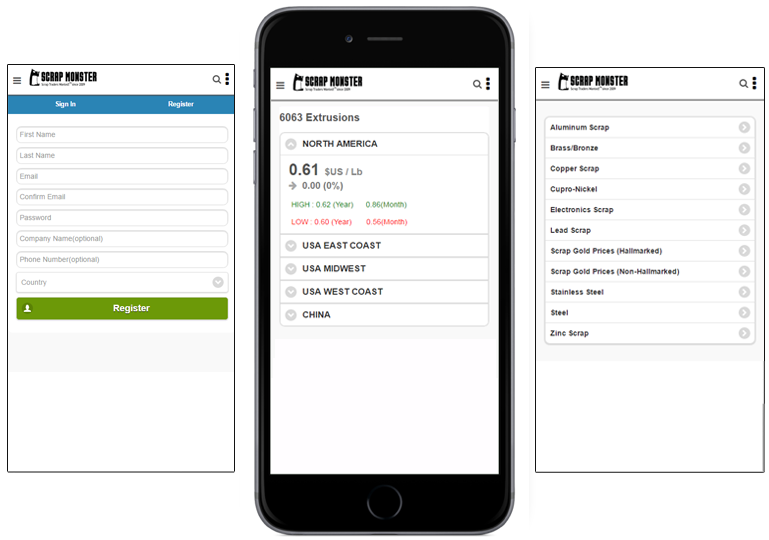 ScrapMonster Mobile Download ScrapMonster's mobile app for live scrap metal prices. It is quick and easy to use. Apps are available for iOS and Android