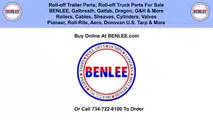 Roll-off trailer parts, roll-off truck parts for sale. BENLEE, Galbreath, Galfab, Dragon, G&H and more. Rollers, cables, sheaves, cylinders, valves and more. Also, Pioneer, Roll-Rite, Aero, Donovan, U.S. Tarp and more. Order online or call 734-722-8100 to order.